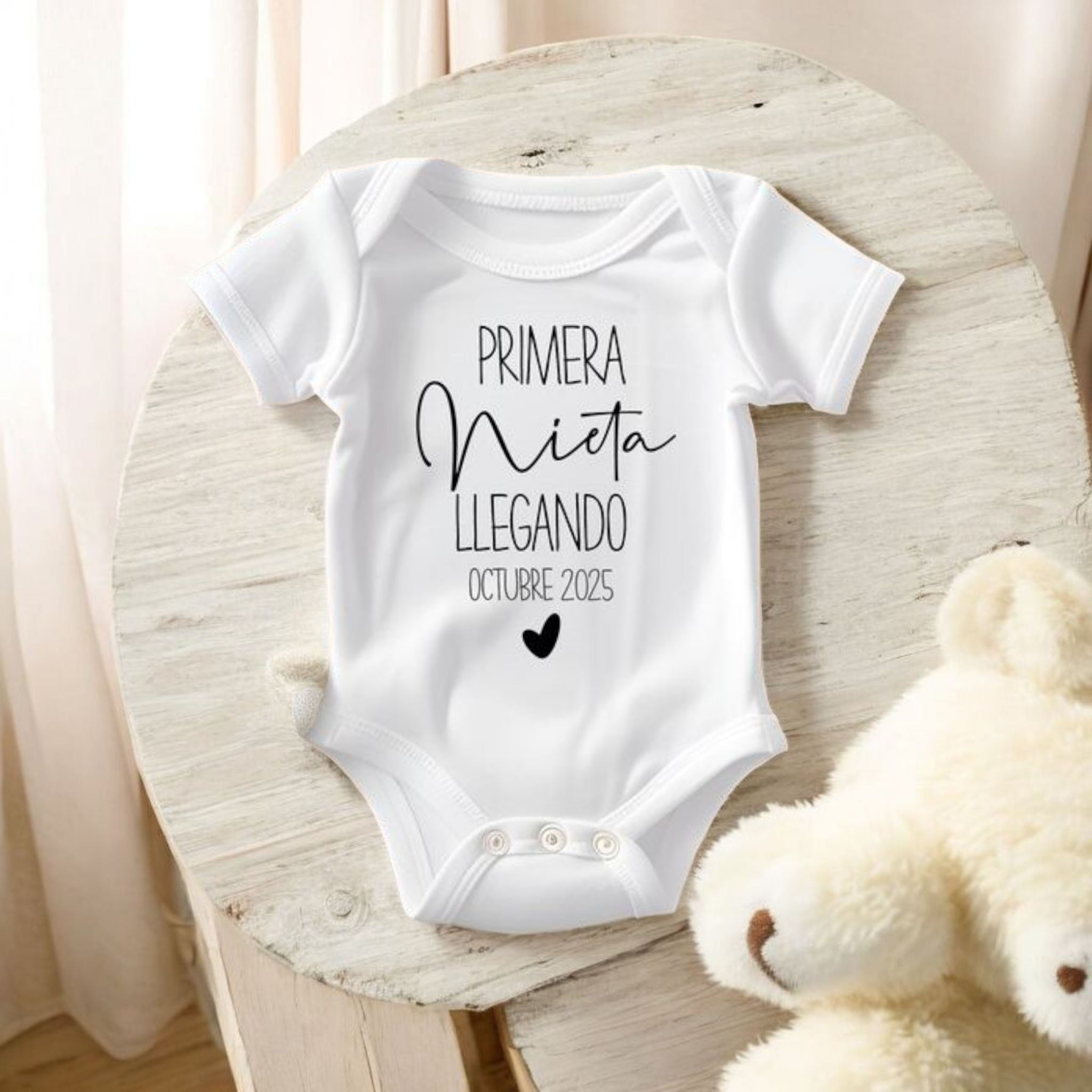 Este body es el regalo perfecto para anunciar y celebrar la llegada de la primera nieta, creando un recuerdo único que la familia atesorará para siempre. Ideal para sesiones de fotos, visitas familiares y momentos inolvidables.