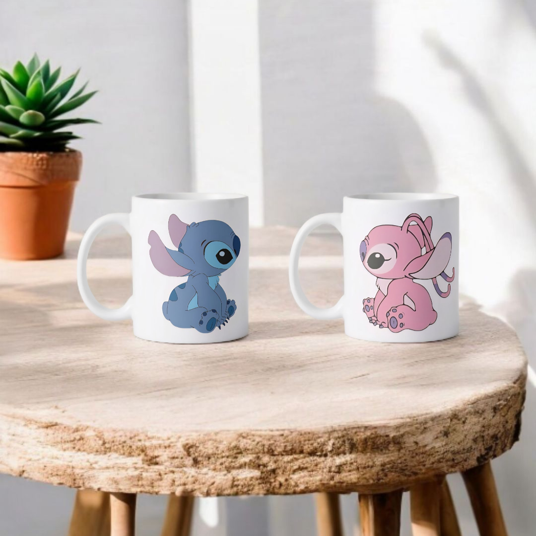 Celebra el amor con este adorable pack de 2 tazas personalizadas de Stitch y Angel que une a dos almas inseparables. Una taza lleva la frase “Yo nací para amarte”, mientras que la otra dice “Y no hay planeta ni galaxia que pueda cambiarlo”, inspiradas en la tierna historia de Stitch y Angel.